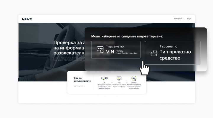 "Занесете преносимото устройство (USB) в превозното си средство и продължете с процеса на актуализиране.Инструкциите са дадени по-долу."