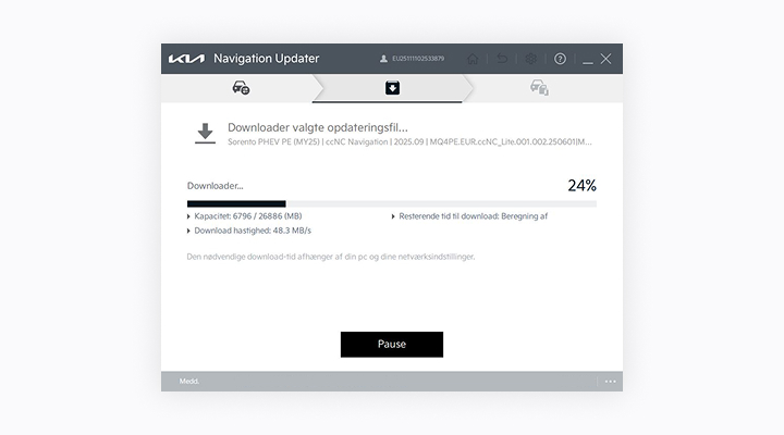- Forsigtig: Hvis du bruger køretøjets batteristrøm, skal du sørge for, at batteriet er tilstrækkeligt opladet, før du fortsætter med opdateringen.