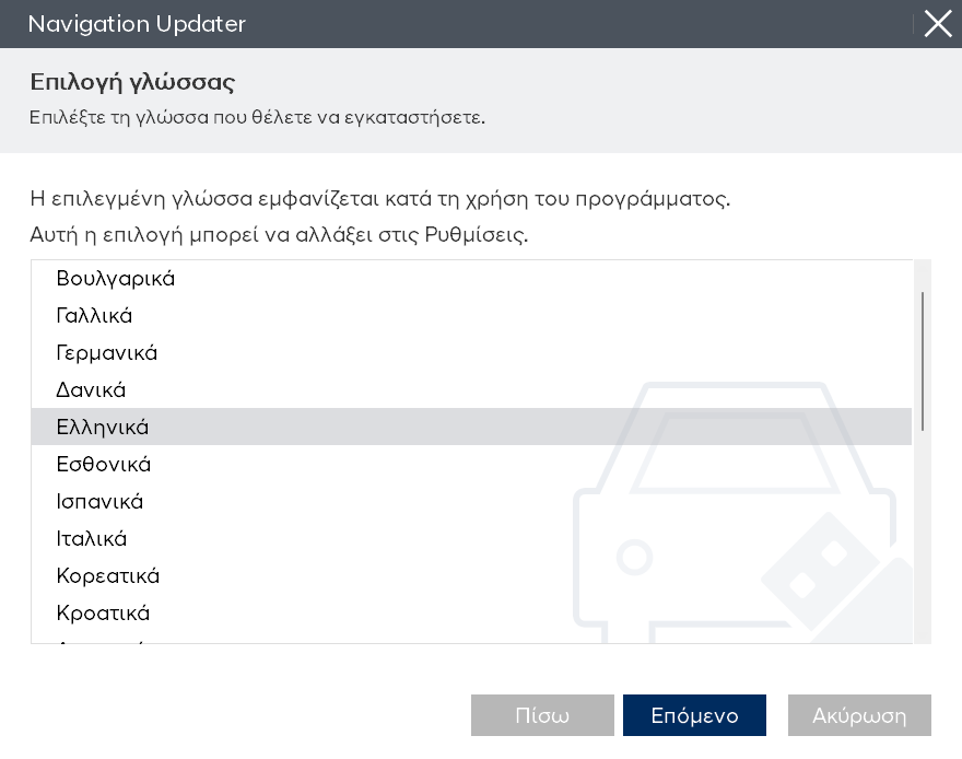 Επιλέξτε τη γλώσσα στην οποία θέλετε να χρησιμοποιήσετε το πρόγραμμα και έπειτα κάντε κλικ στο κουμπί «Επόμενο».