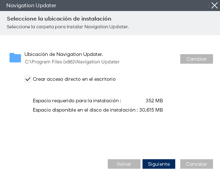 - ※ Si el PC lo reconoce como un disco local en lugar de un disco extraíble, la copia de archivos mediante Navigation Updater podría no continuar.
