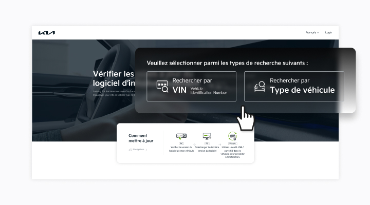 "Veuillez amener le périphérique (USB) dans votre véhicule et procéder à la mise à jour.Les instructions sont fournies ci-dessous."