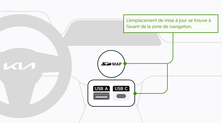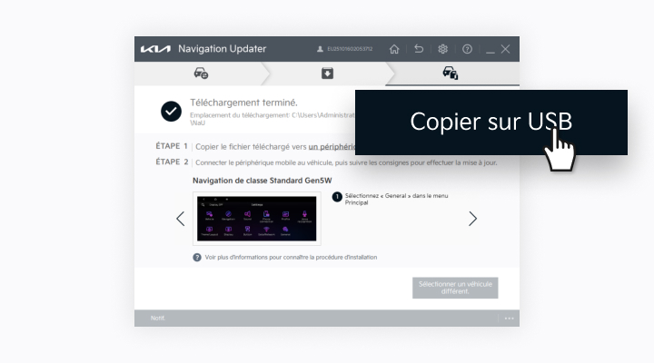 "Veuillez amener le périphérique (USB) dans votre véhicule et procéder à la mise à jour.Les instructions sont fournies ci-dessous."