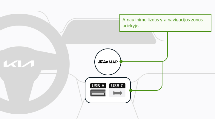 Prijunkite išimamą laikmeną prie transporto priemonės, kad atnaujintumėte navigacijos programinę įrangą.