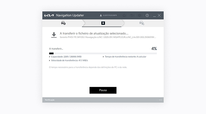 1. A atualização só pode ser realizada enquanto o sistema de navegação estiver ligado.