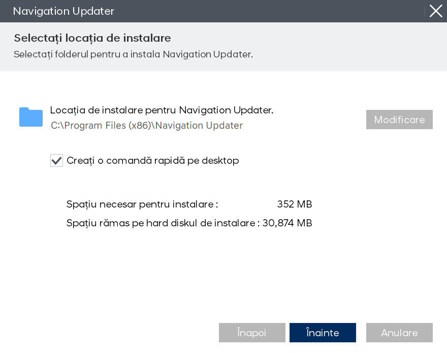 Alegeți locația unde va fi instalat programul, apoi faceți clic pe butonul „Înainte” pentru a continua instalarea.