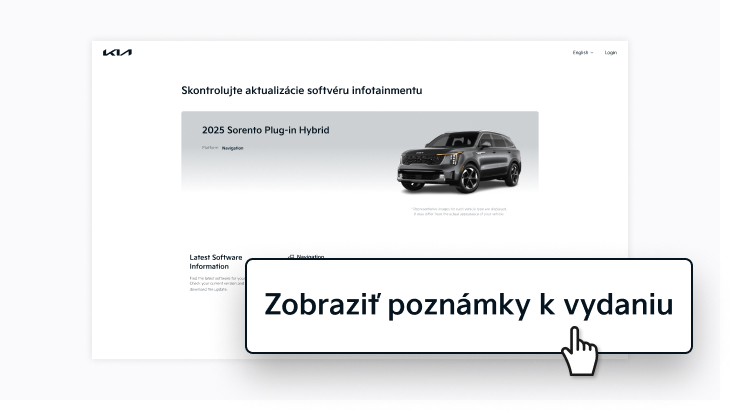 - Pomocou [Skontrolovať dostupné aktualizácie softvéru] na domovskej obrazovke vyhľadajte najnovší softvér pre vaše vozidlo.