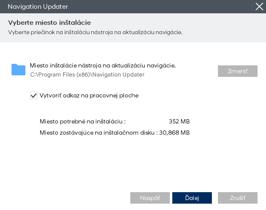 Spustite Navigation Updater.