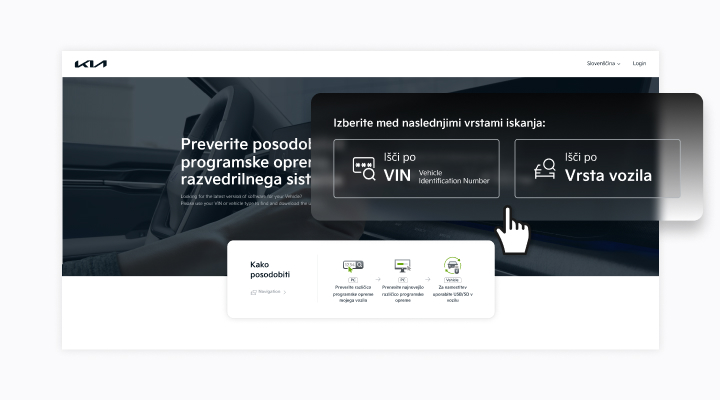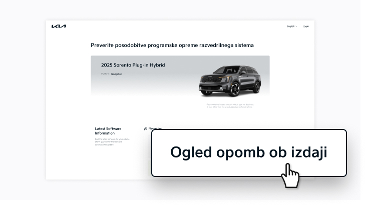 - Na začetnem zaslonu uporabite možnost [Preveri razpoložljive posodobitve programske opreme], da poiščete najnovejšo programsko opremo za svoje vozilo.