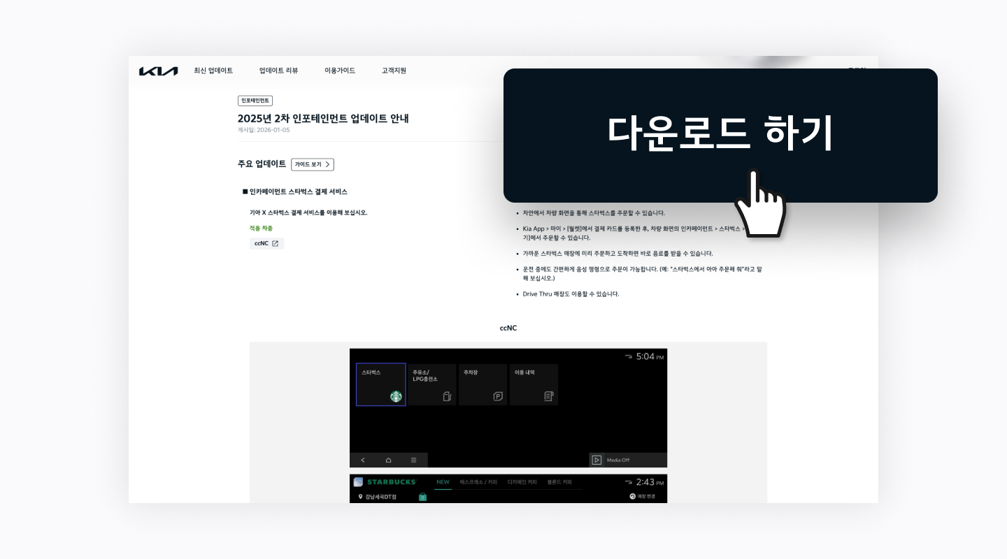 - 업데이트 내용을 확인한 후, [다운로드] 버튼을 선택하여 Navigation Updater를 자동 실행합니다.