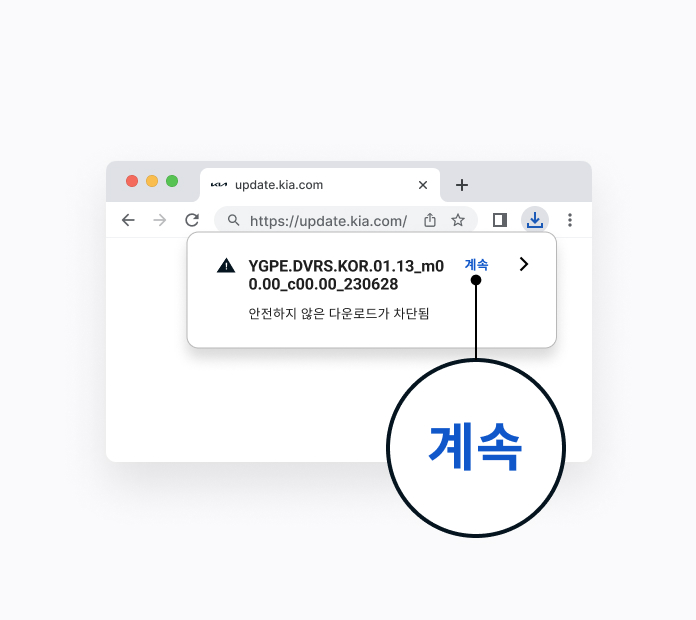 - 웹 브라우저(Chrome, Microsoft Edge 등)에서 다운로드를 진행합니다.Chrome알림 없이 바로 다운로드가 진행됩니다.단, 아래 팝업이 노출되는 경우 ‘계속’을 선택하여 다운로드를 진행해주십시오.다운로드가 완료되면, ‘폴더 열기’를 선택해주세요.