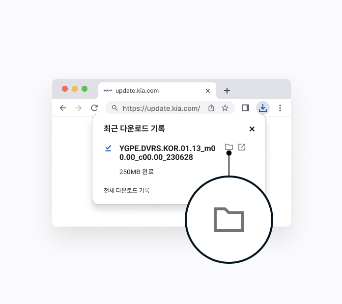 - 다운로드 완료 시, 다운로드 받은 파일을 USB 메모리의 최상위 폴더(내 PC > USB 드라이브)에 복사해주세요.다운로드 파일은 별도의 절차(압축 해제, 파일명 변경 등) 없이 바로 USB 메모리의 최상위 폴더에 저장해주세요.